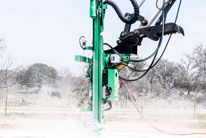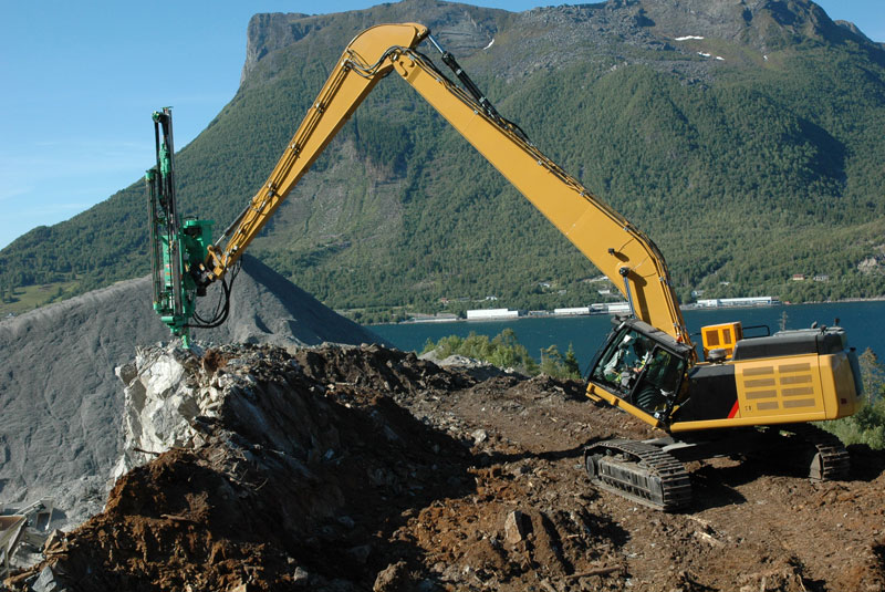 Instalada en la excavadora correspondiente, sustituye perfectamente a un carro de perforación hidráulico con un coste mucho menor. Mientras no utiliza su excavadora para cargar, puede instalar este accesorio y realizar trabajos de perforación con una gran rendimiento.