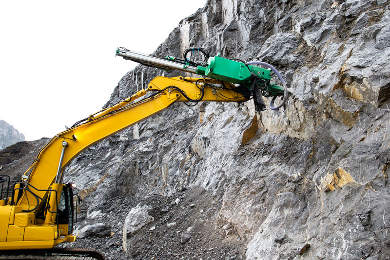 Diseñada para instalar en excavadoras de 10 a 25 Tn., instala perforadora Montabert HC40. Para taladros de diámetro entre 38 y 76 mm.